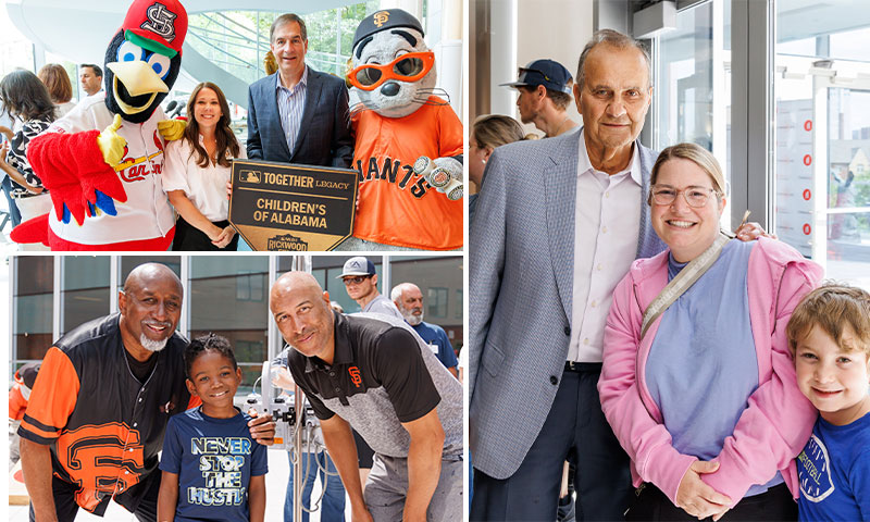Birmingham was center stage for Major League Baseball’s Tribute to the Negro Leagues game at Rickwood field in June, and it was a big event for Children’s of Alabama as well. MLB executives, former players and representatives from the St. Louis Cardinals and San Francisco Giants charitable organizations visited the hospital while in town. Some of the special guests—including mascots for both teams—played games and took photos with Children’s patients. Hall of Fame manager and four-time World Series champion Joe Torre was among the visitors.